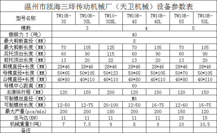 您當前的位置:首頁 / 產(chǎn)品中心 / 四模四沖冷鐓機 / └ TW10B(M6)多工位冷鐓機 / 四模四沖TW10B